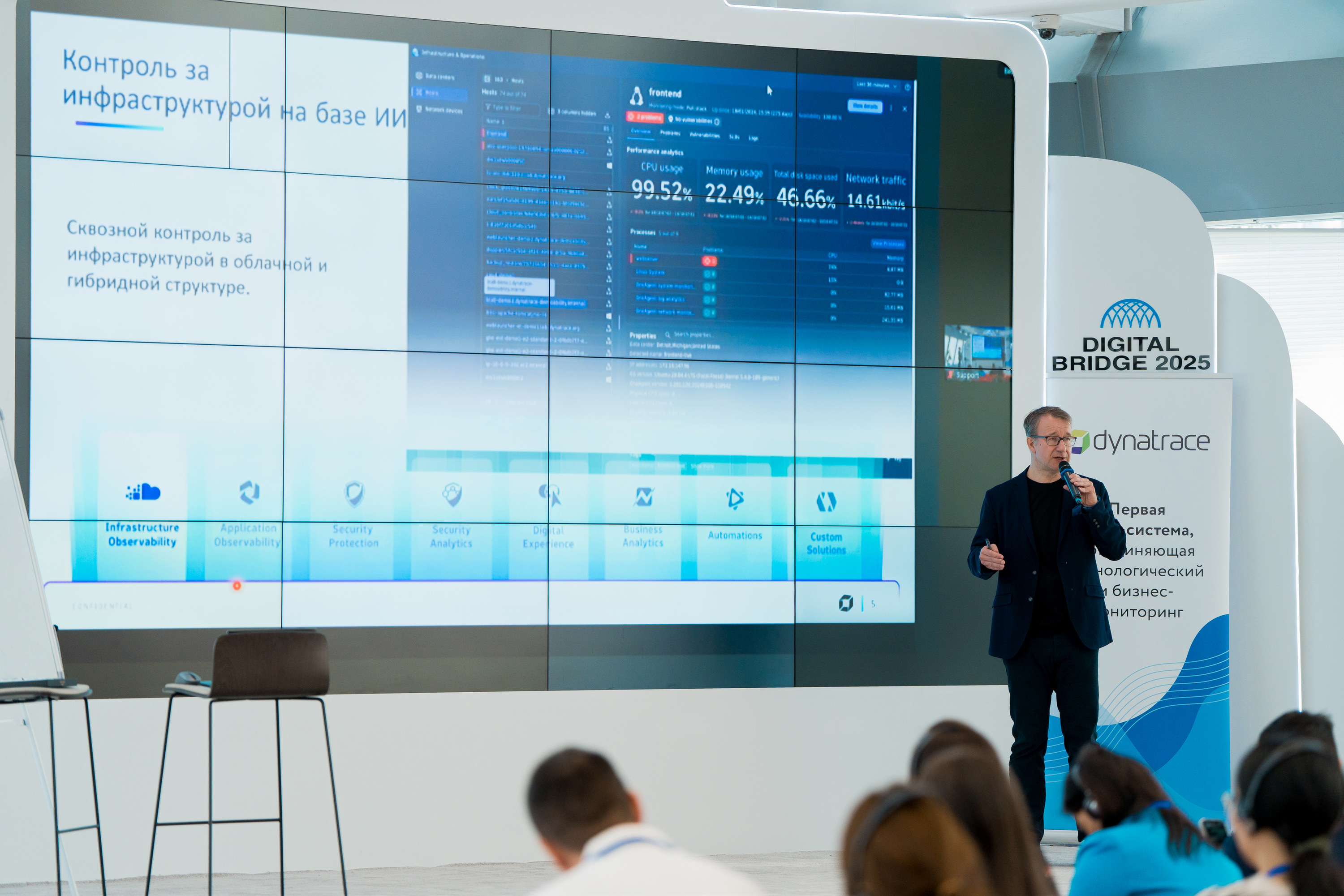 С докладом о главном тренде 2025 года выступил Януш Дабровский, ведущий инженер по продуктам Dynatrace. Он показал выход платформы на новый уровень — Business Observability, то есть объединение технических метрик и бизнес-показателей в единую систему принятия решений.